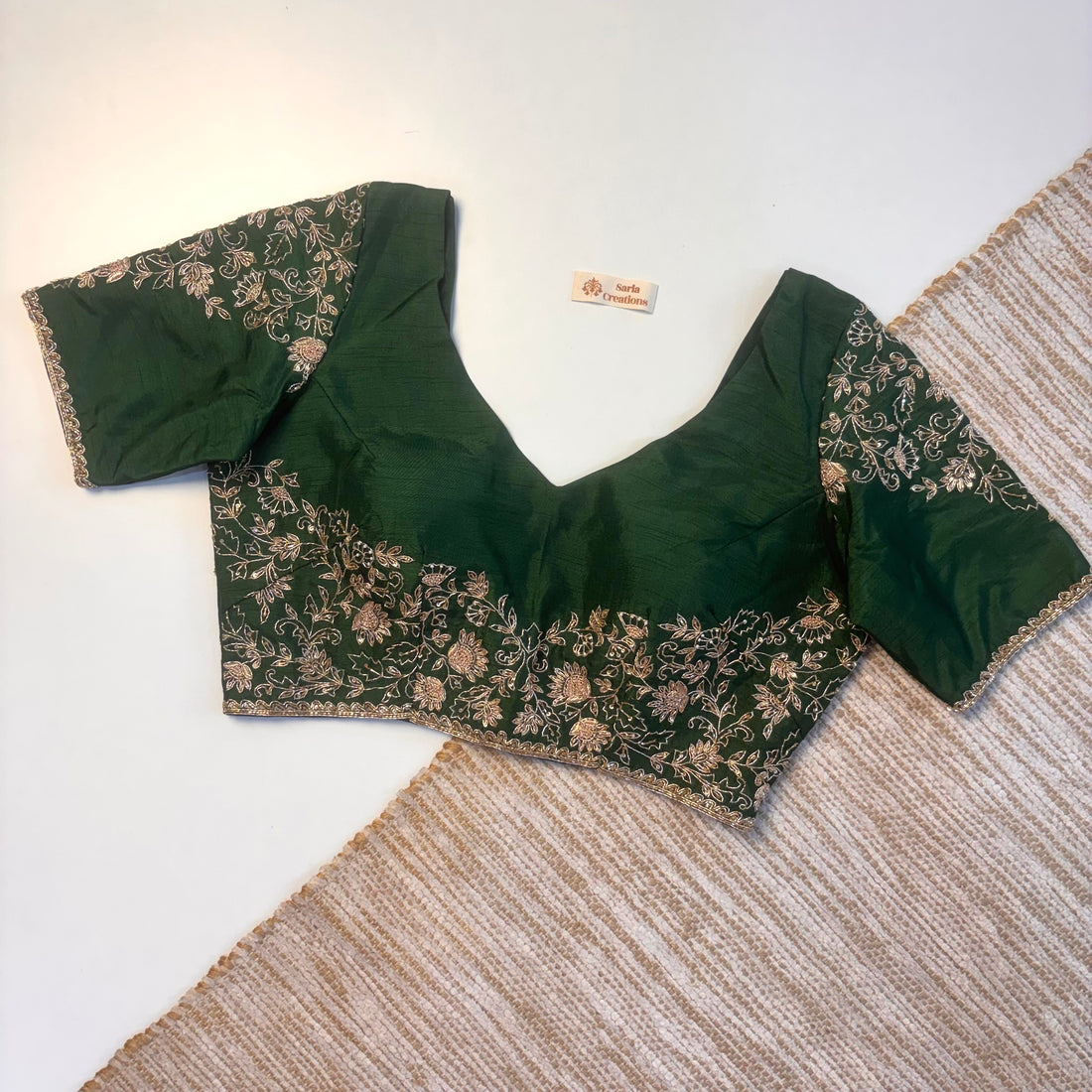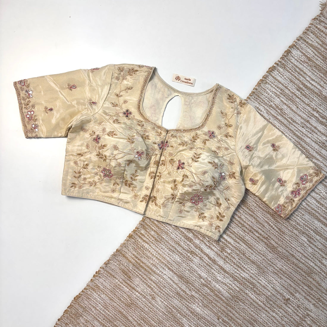 At Sarla Creations, every blouse is made with a personal touch. The embroidery isn't just thread—it's time, skill, and love poured in by our artisans. From soft, delicate patterns to beautifully placed embellishments, each blouse tells a story. It's not just about looking elegant, it's about feeling special every time you wear it.