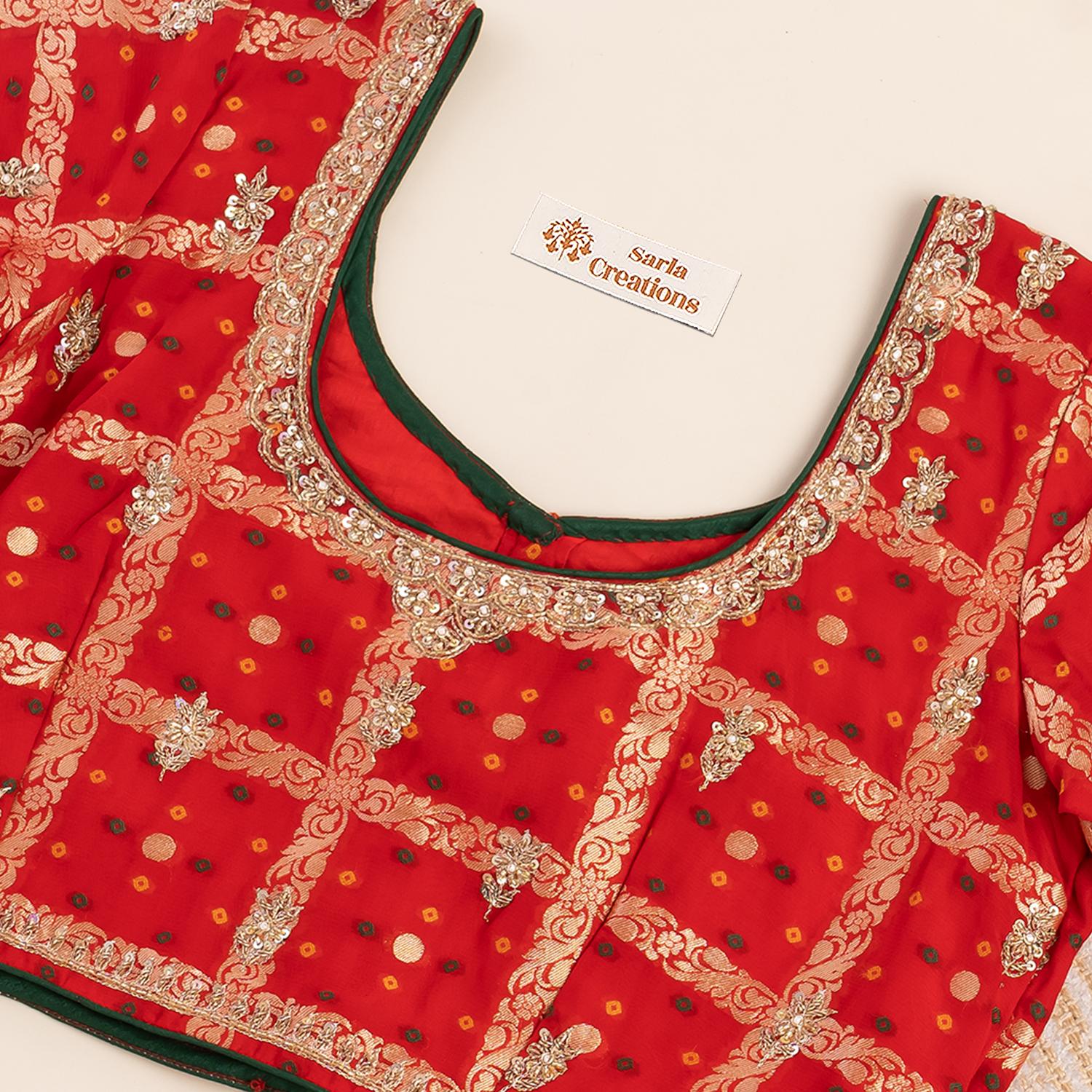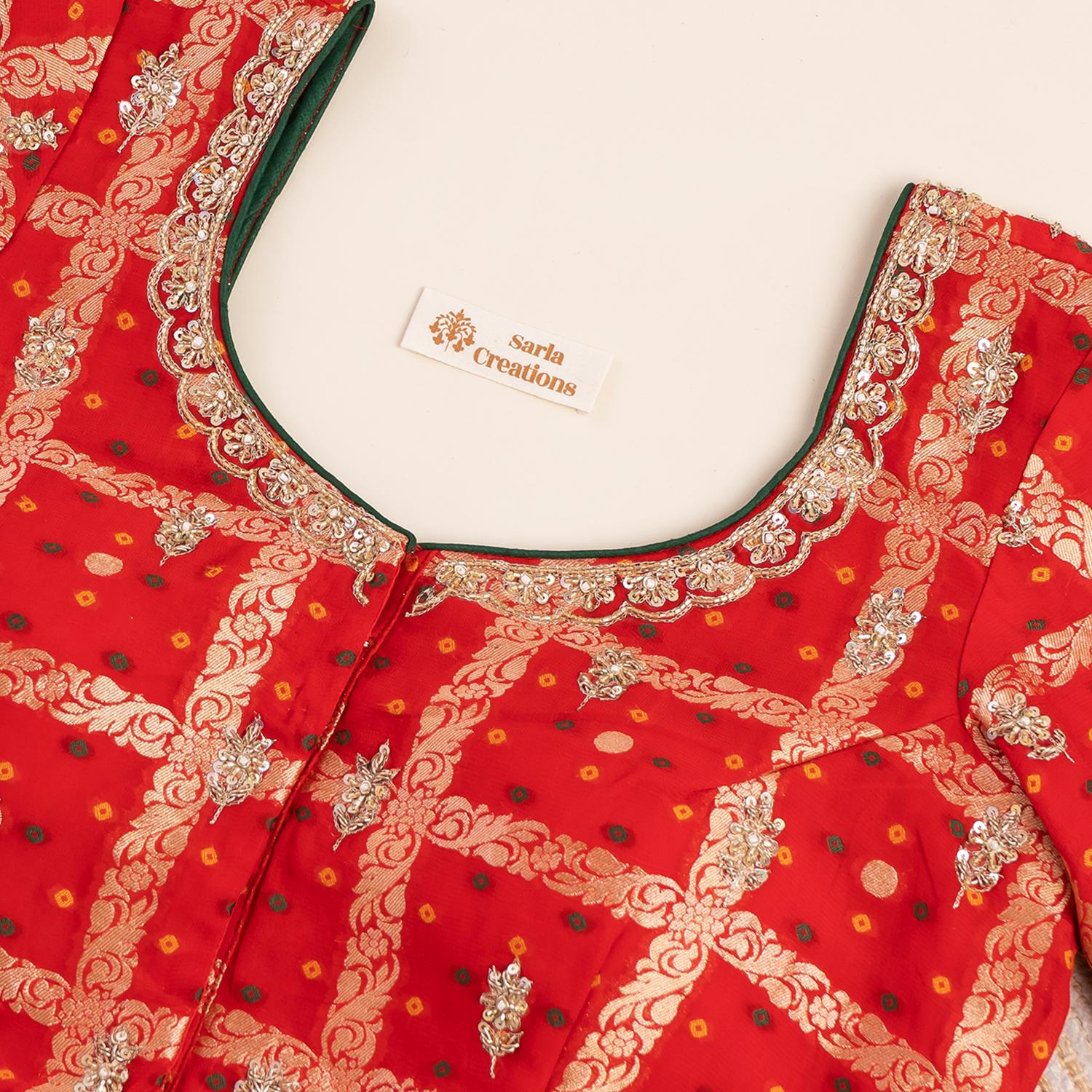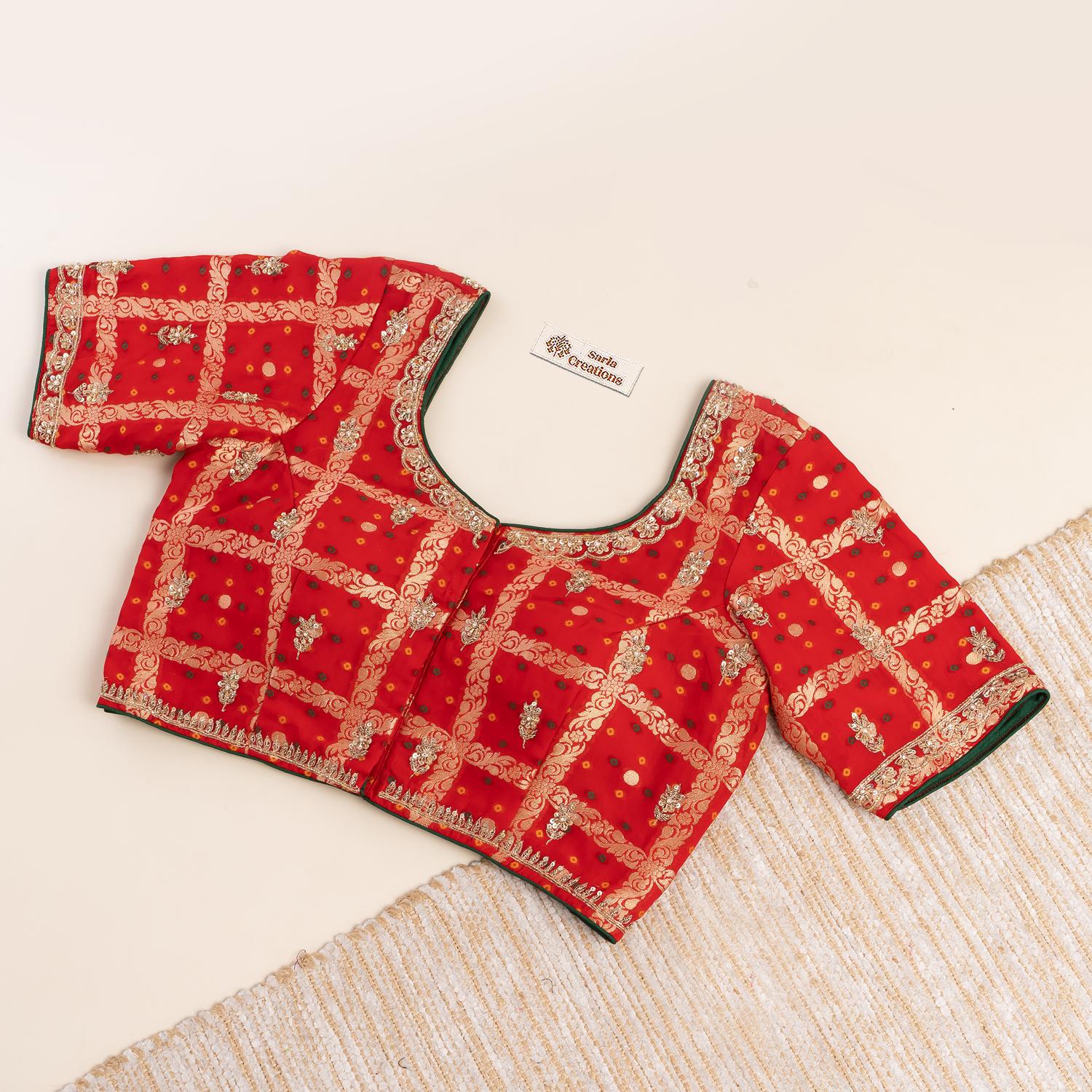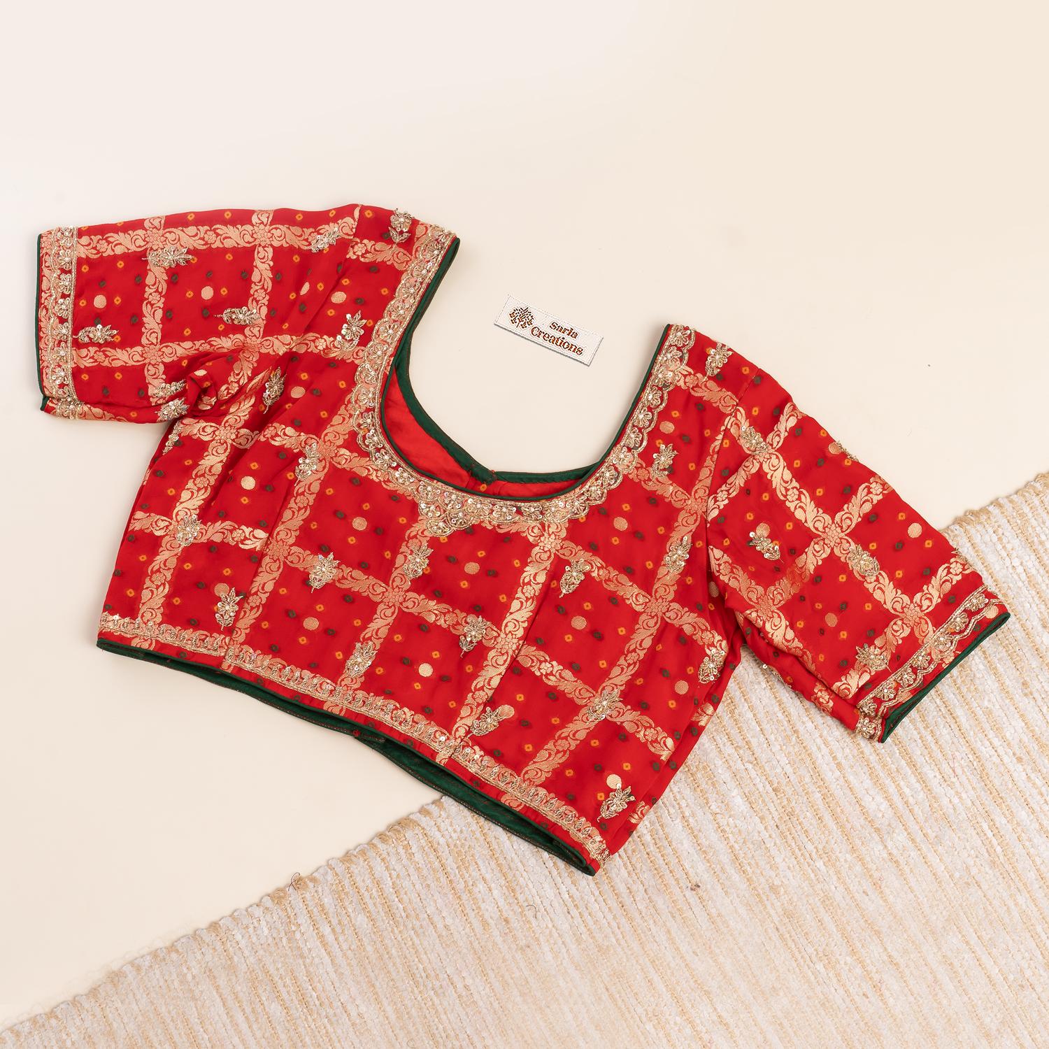 जरदोजी के हाथ से बना लाल ब्लाउज