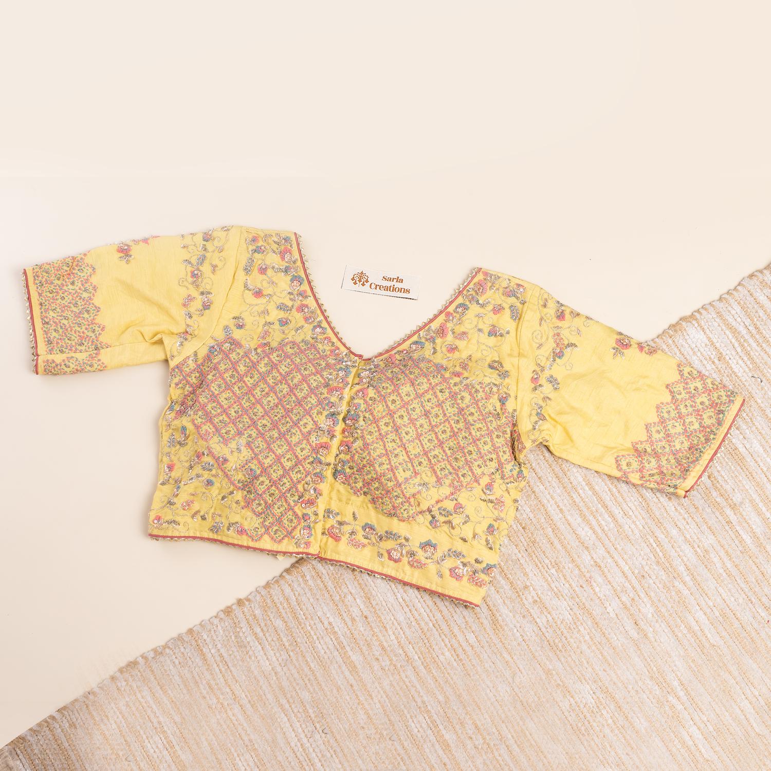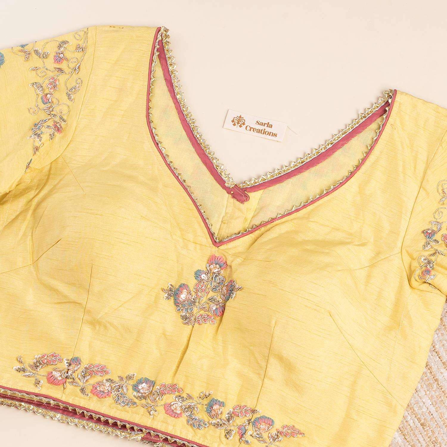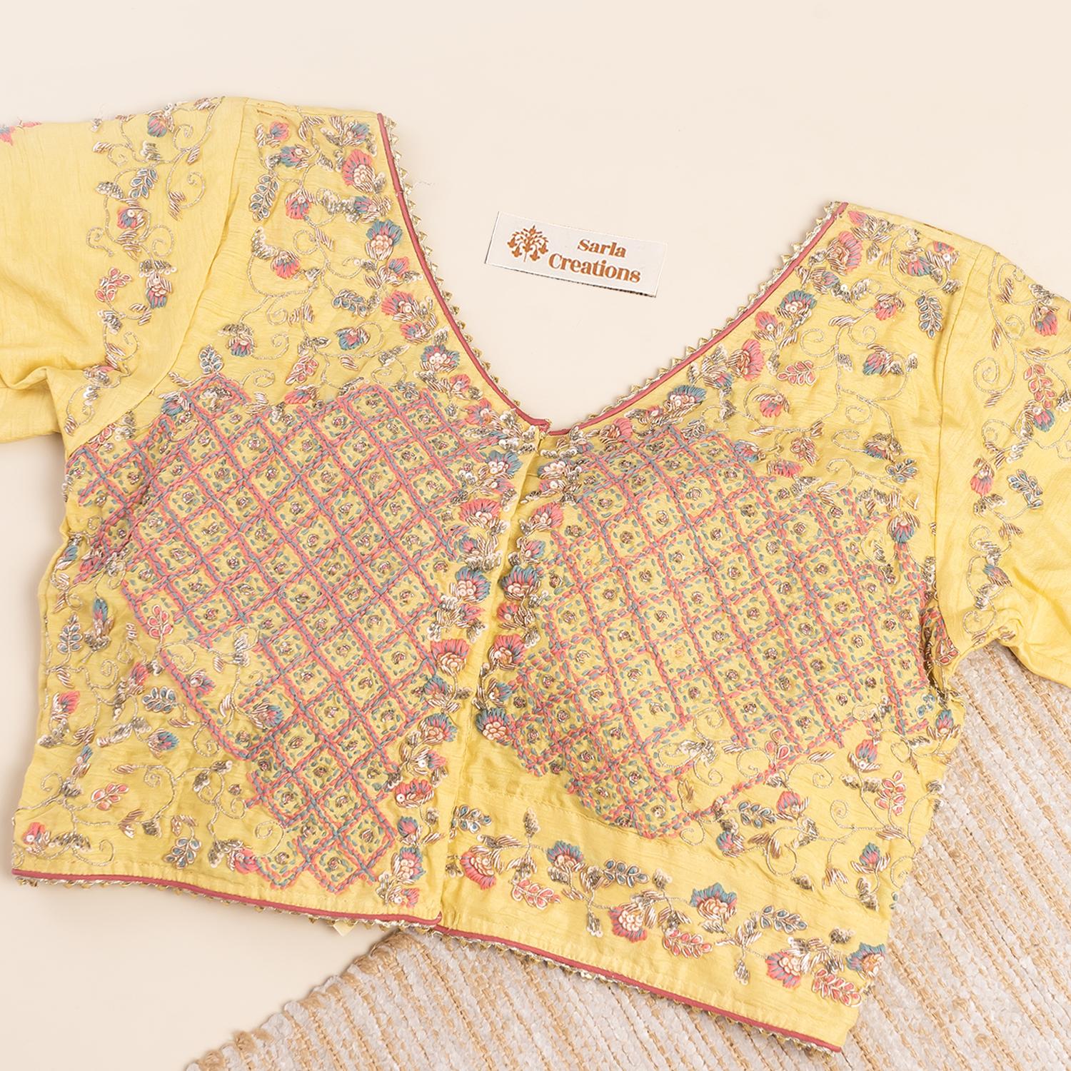 जरदोजी के हाथ से बने नींबू पीले रंग के ब्लाउज