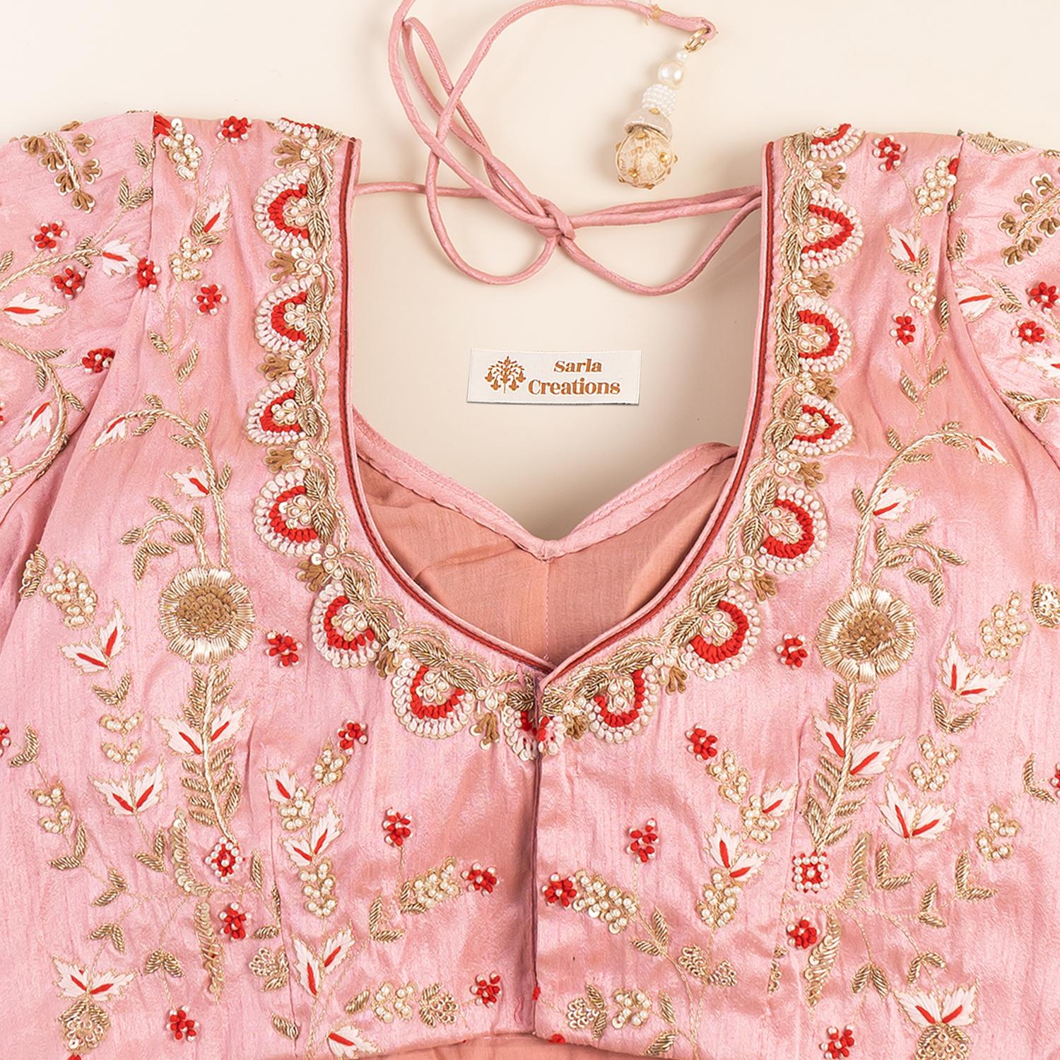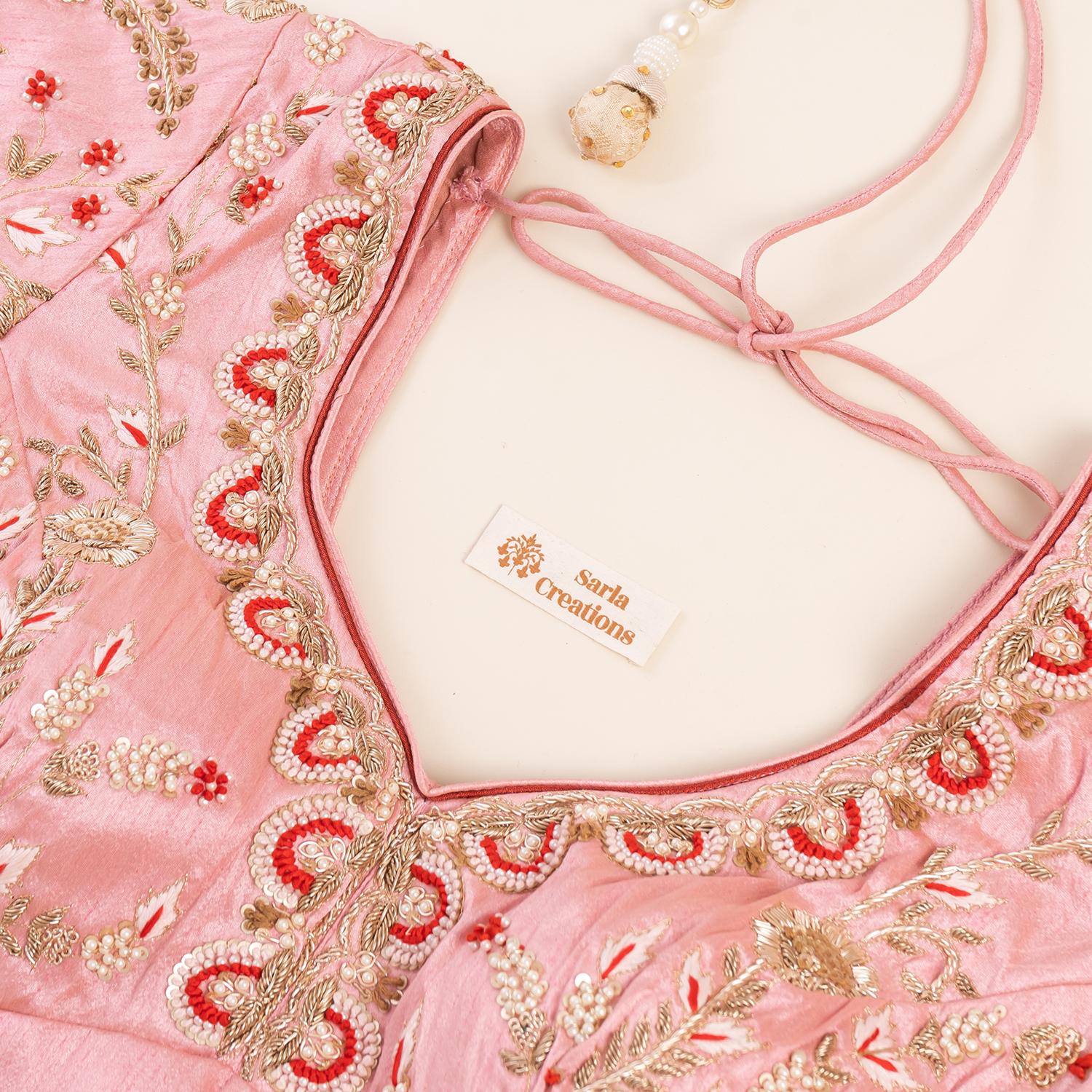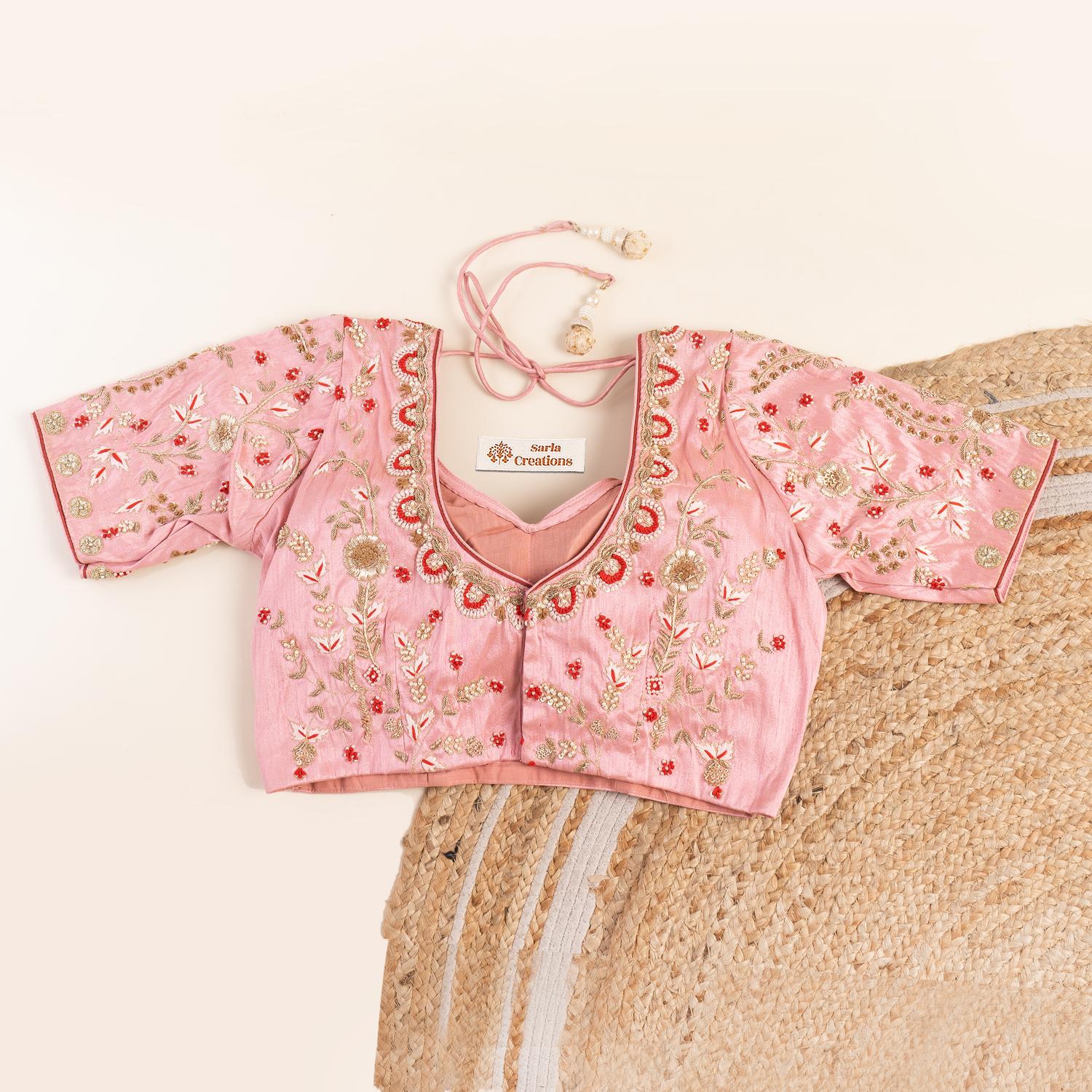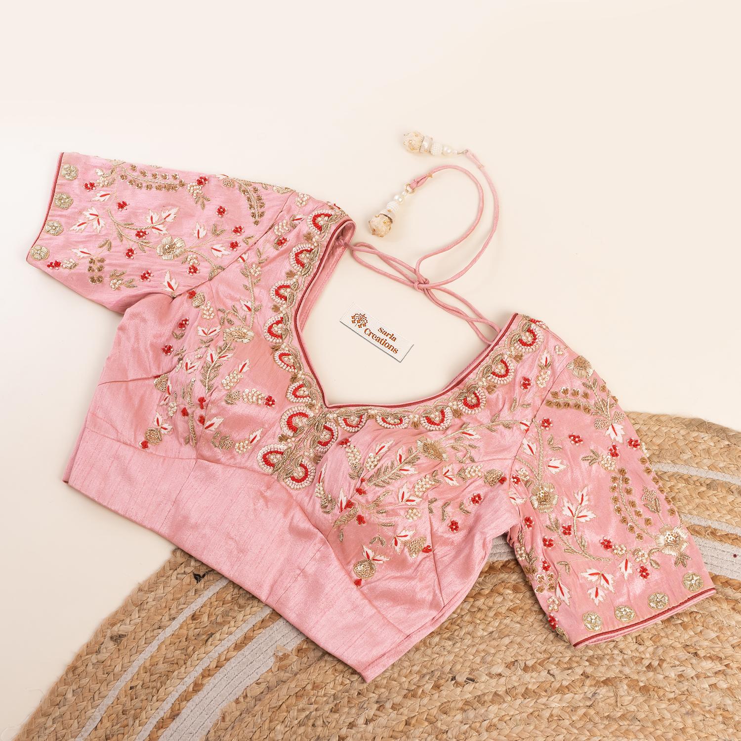 जरदोजी के हाथ से बना गुलाबी ब्लाउज