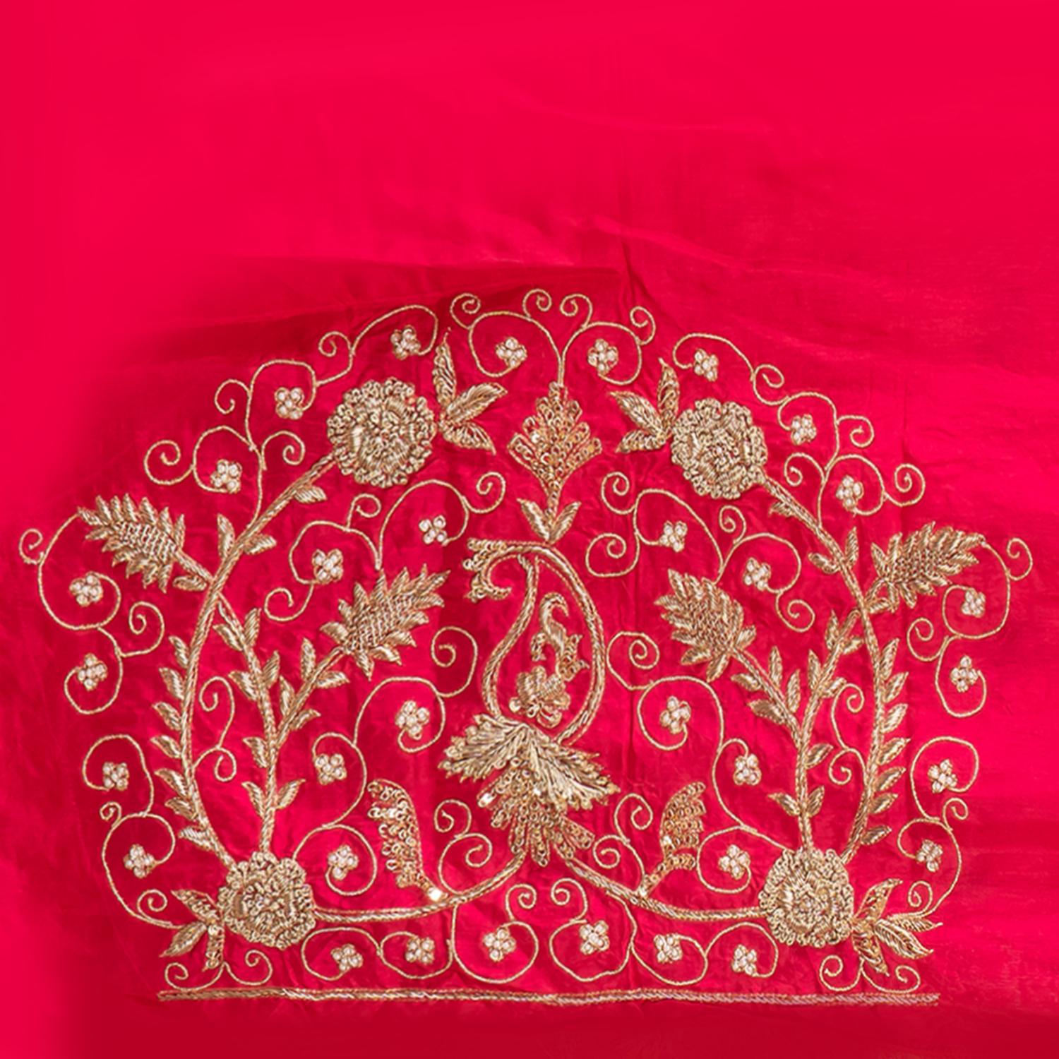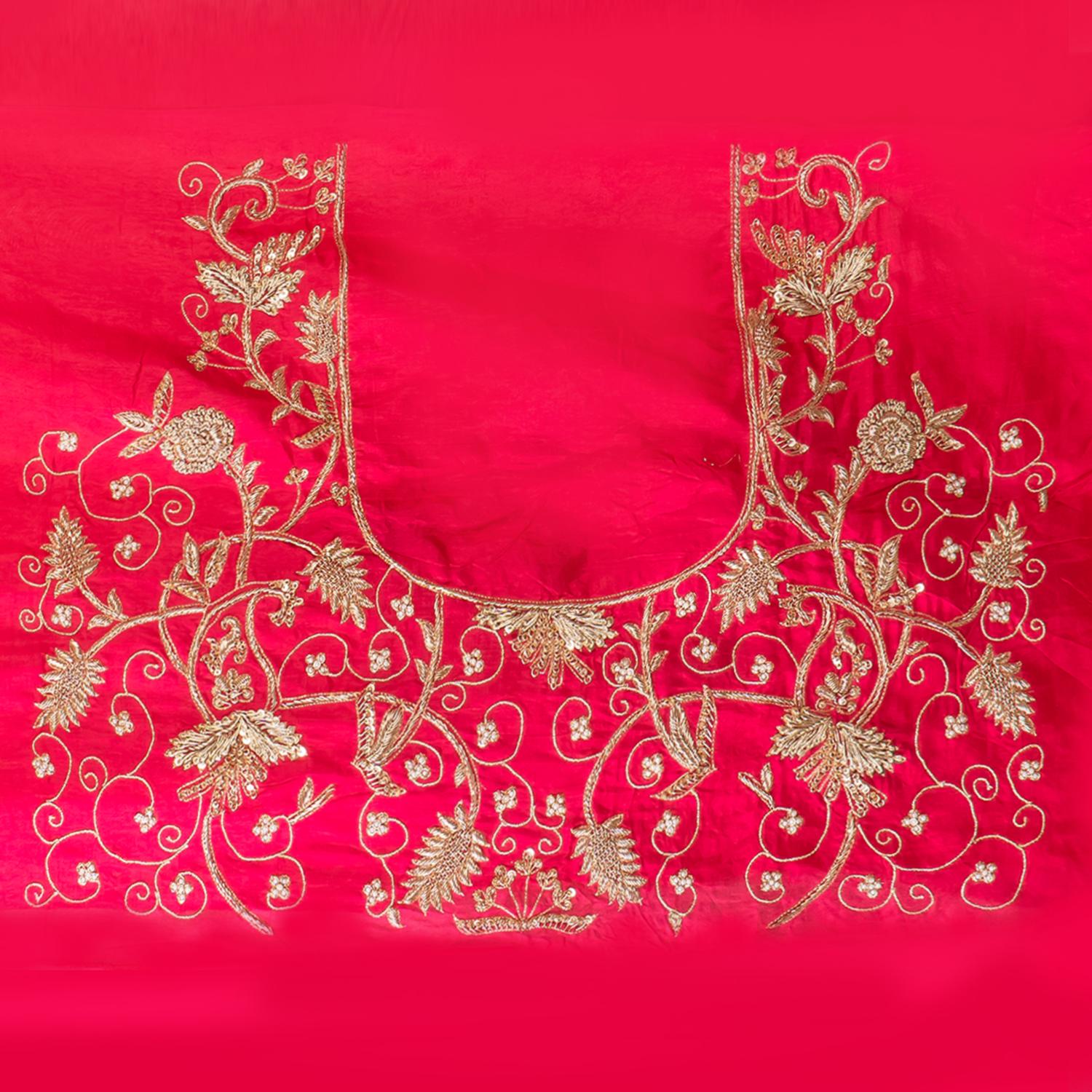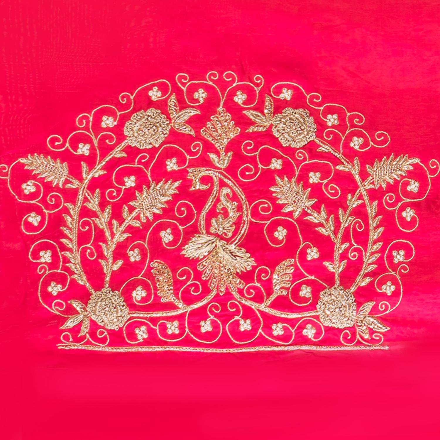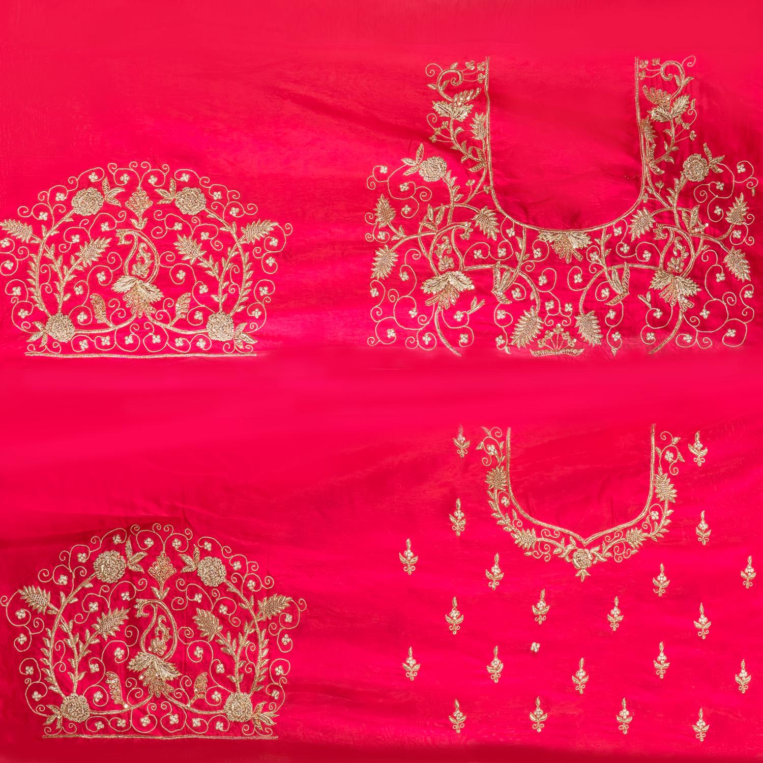 डोला सिल्क में गुलाबी ज़रदोज़ी हस्तकला ब्लाउज पीस