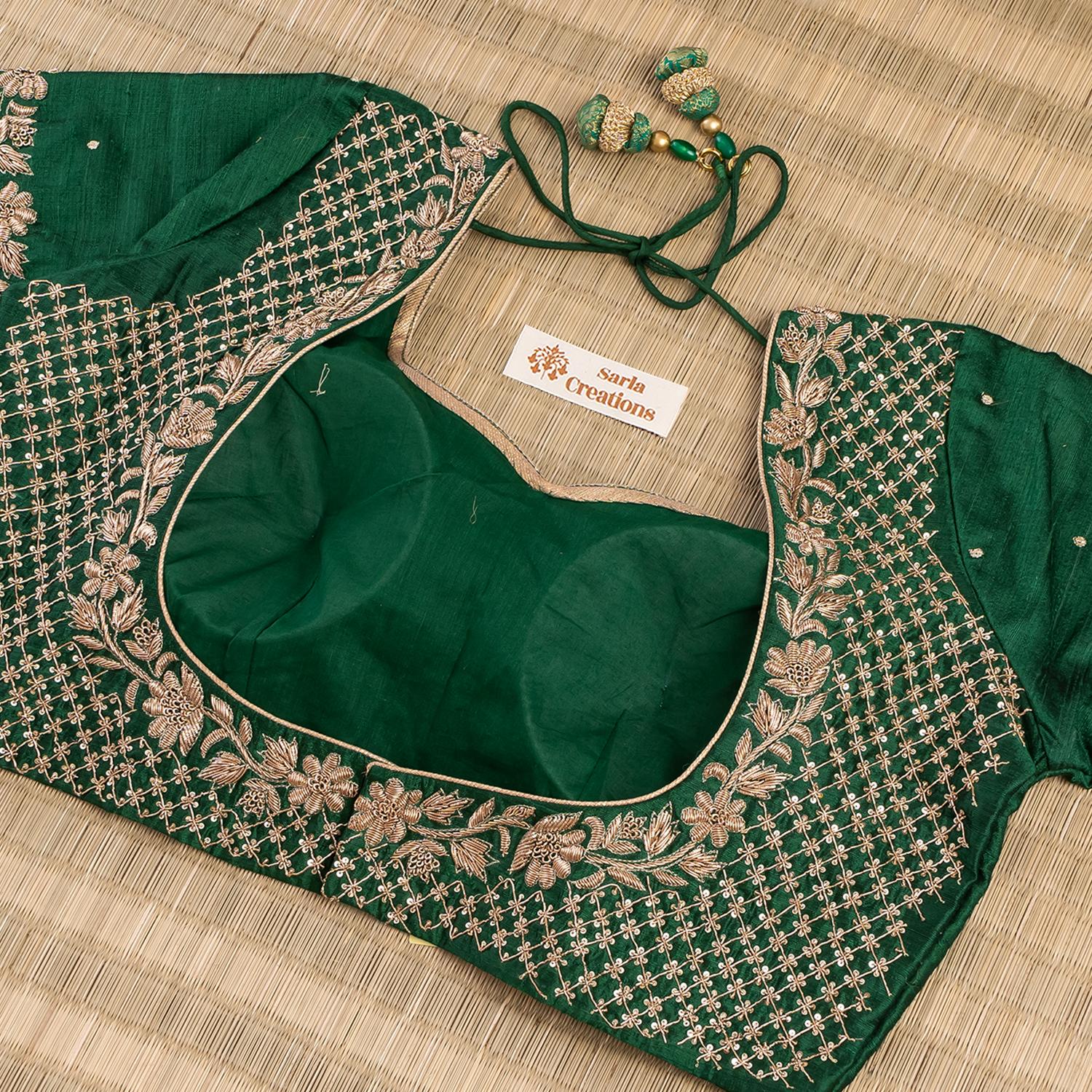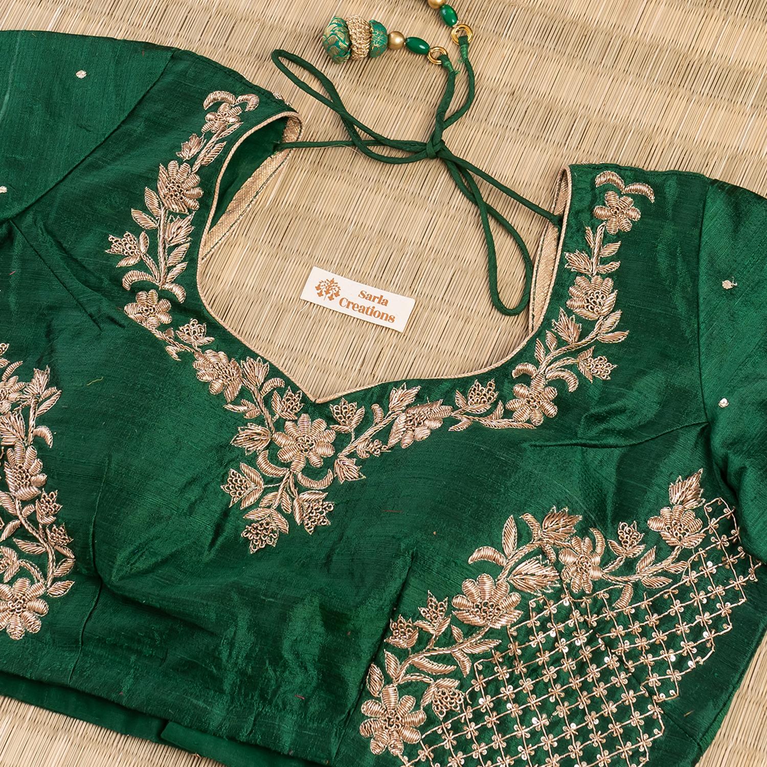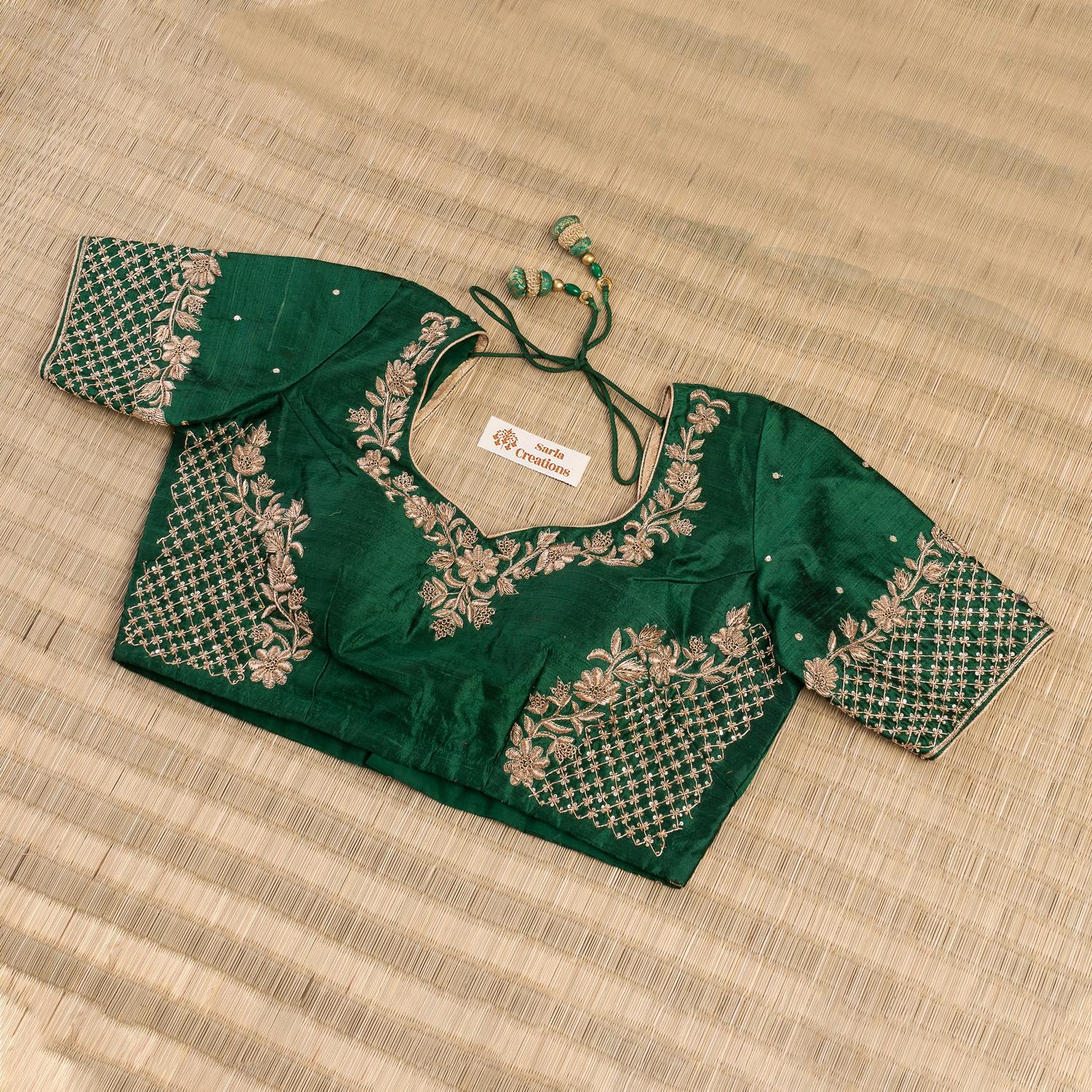 जरदोजी के हाथ से बने हरे ब्लाउज