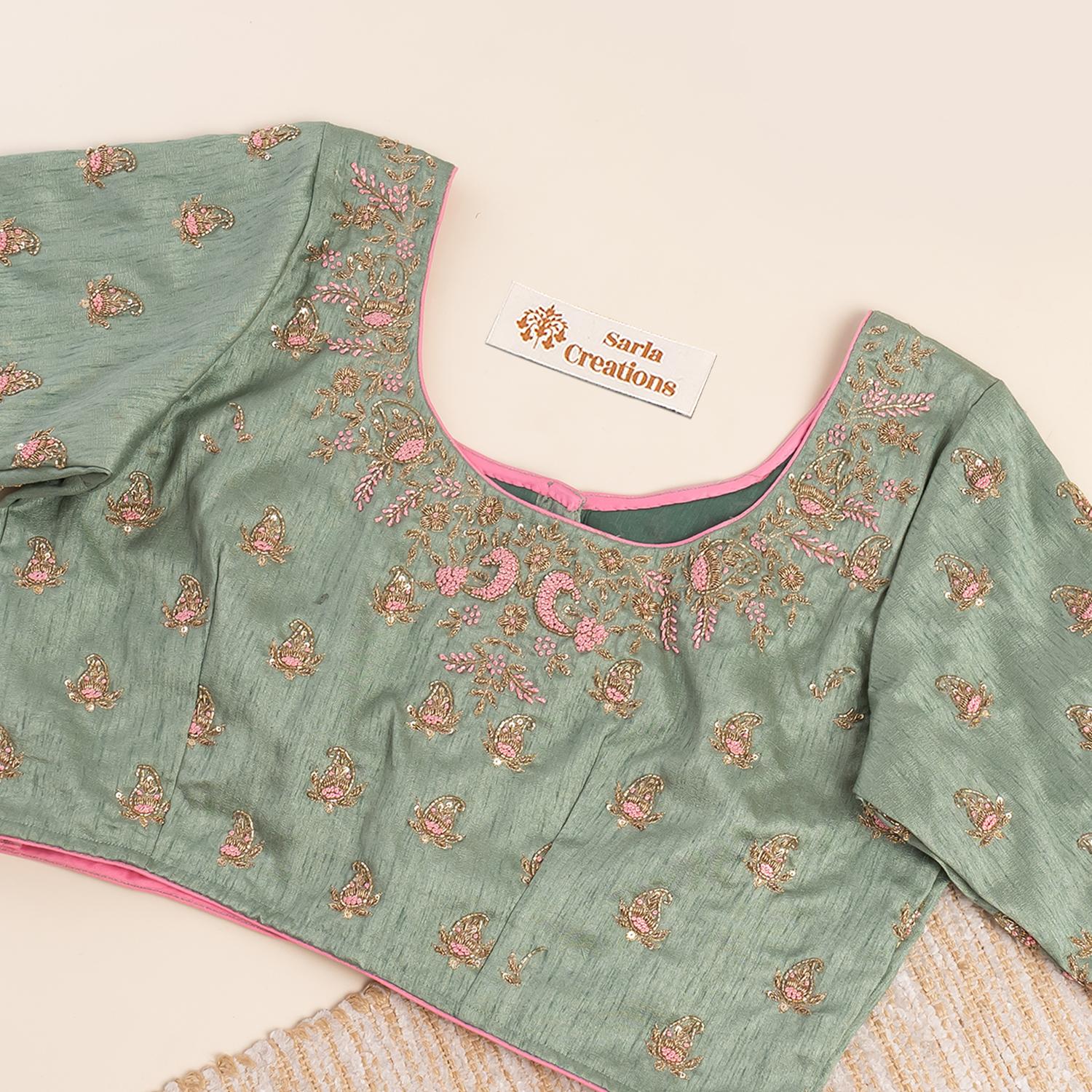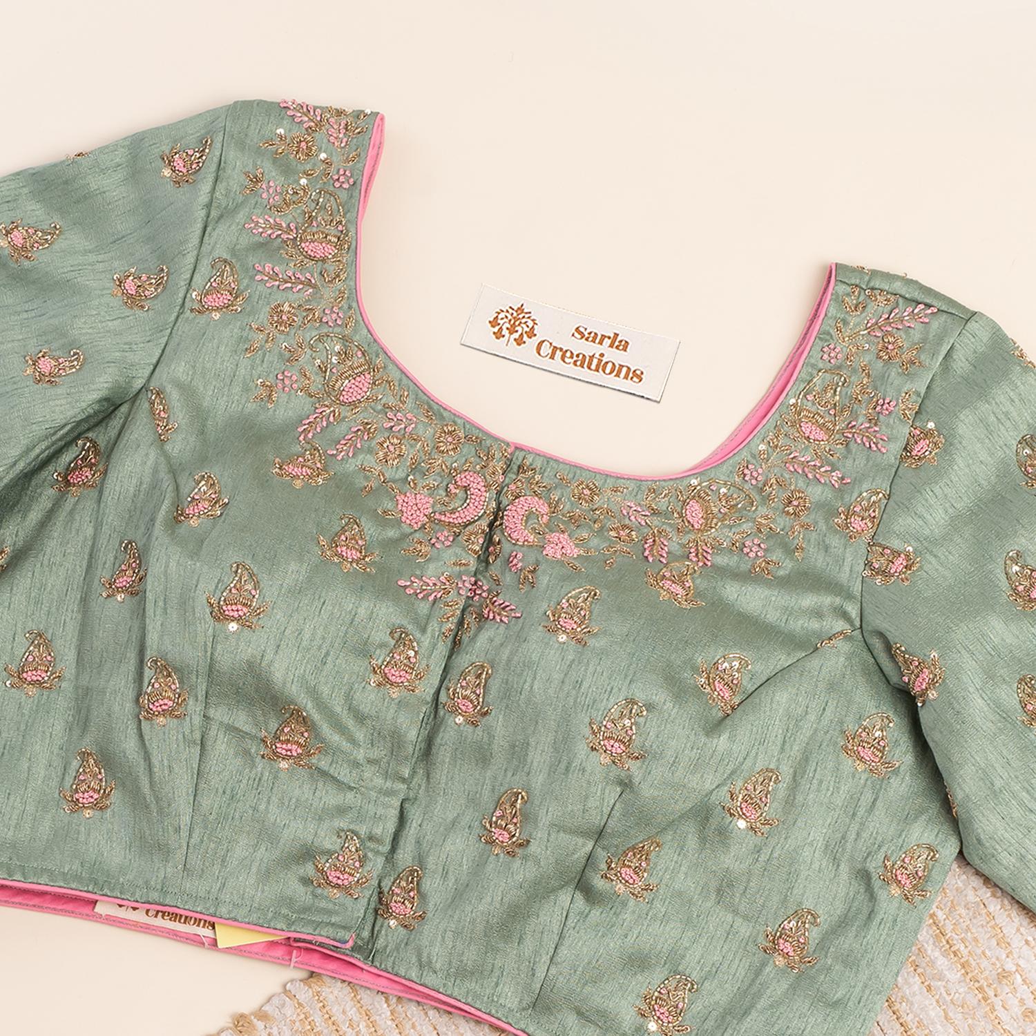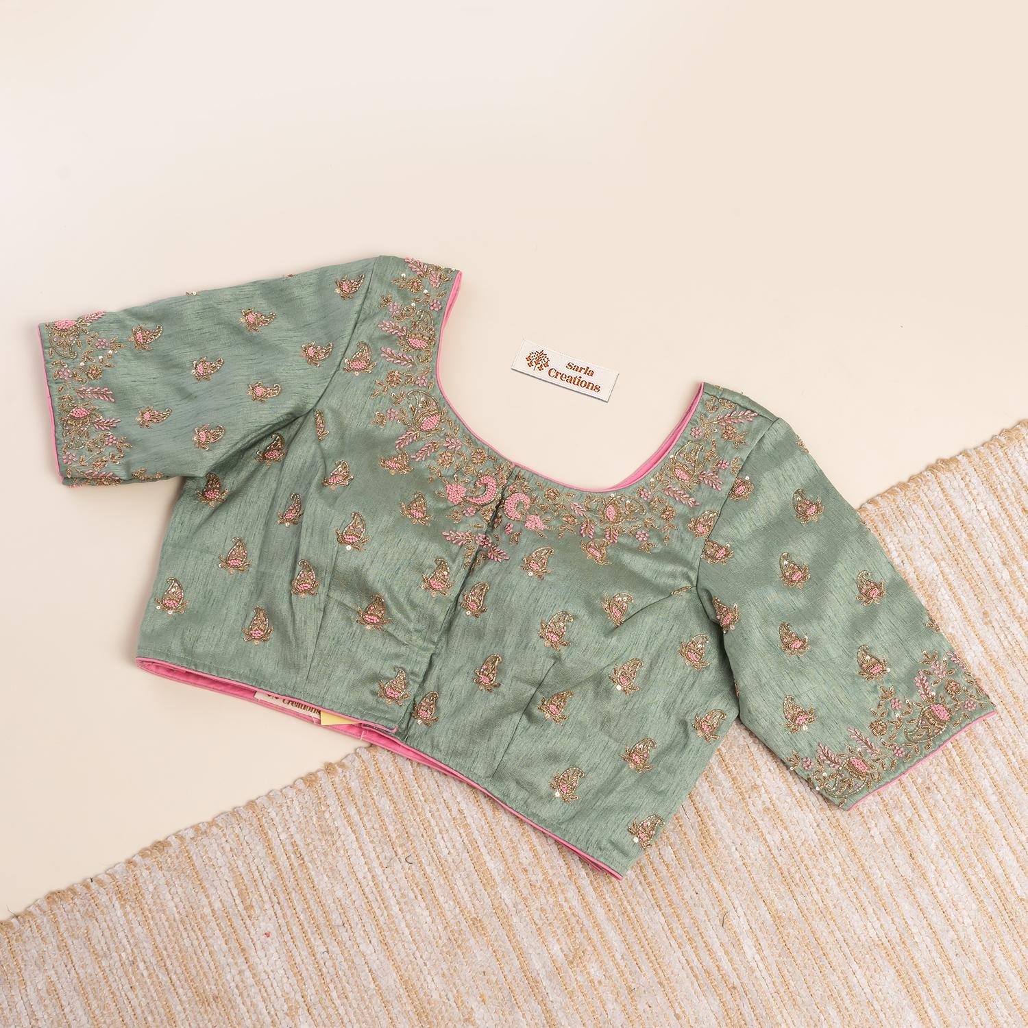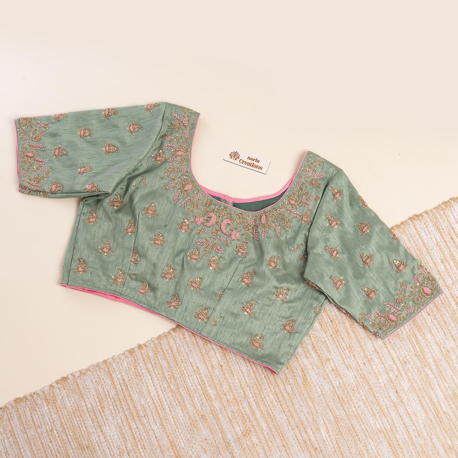 जरदोजी के हाथ से बना हरा ब्लाउज