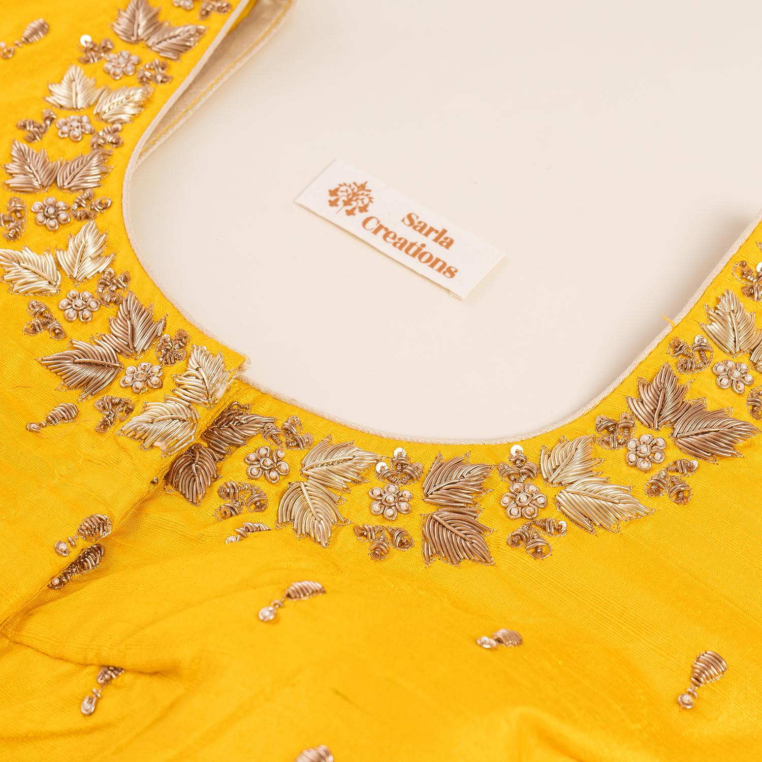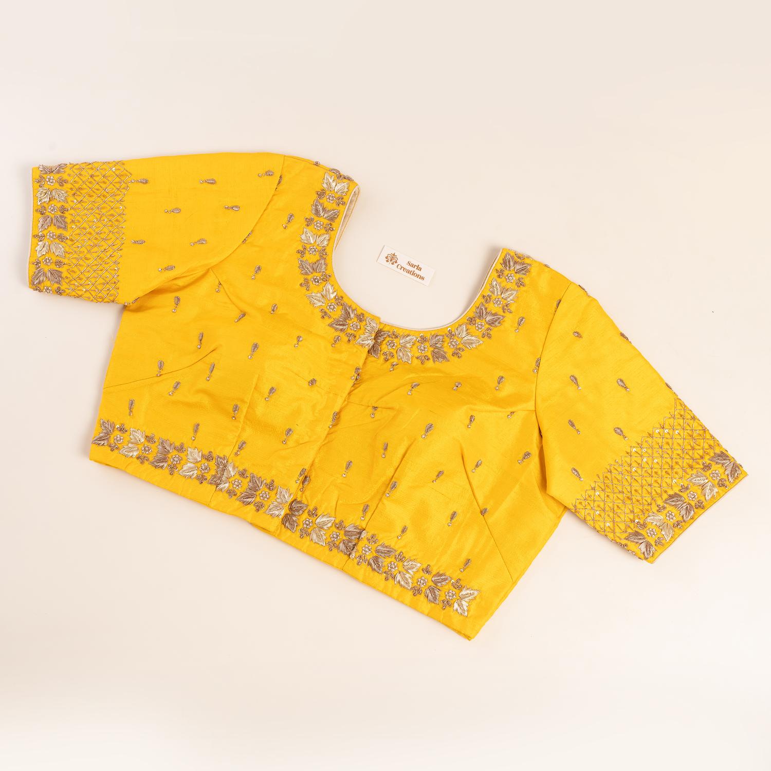 जरदोजी के हाथ से बना पीला ब्लाउज