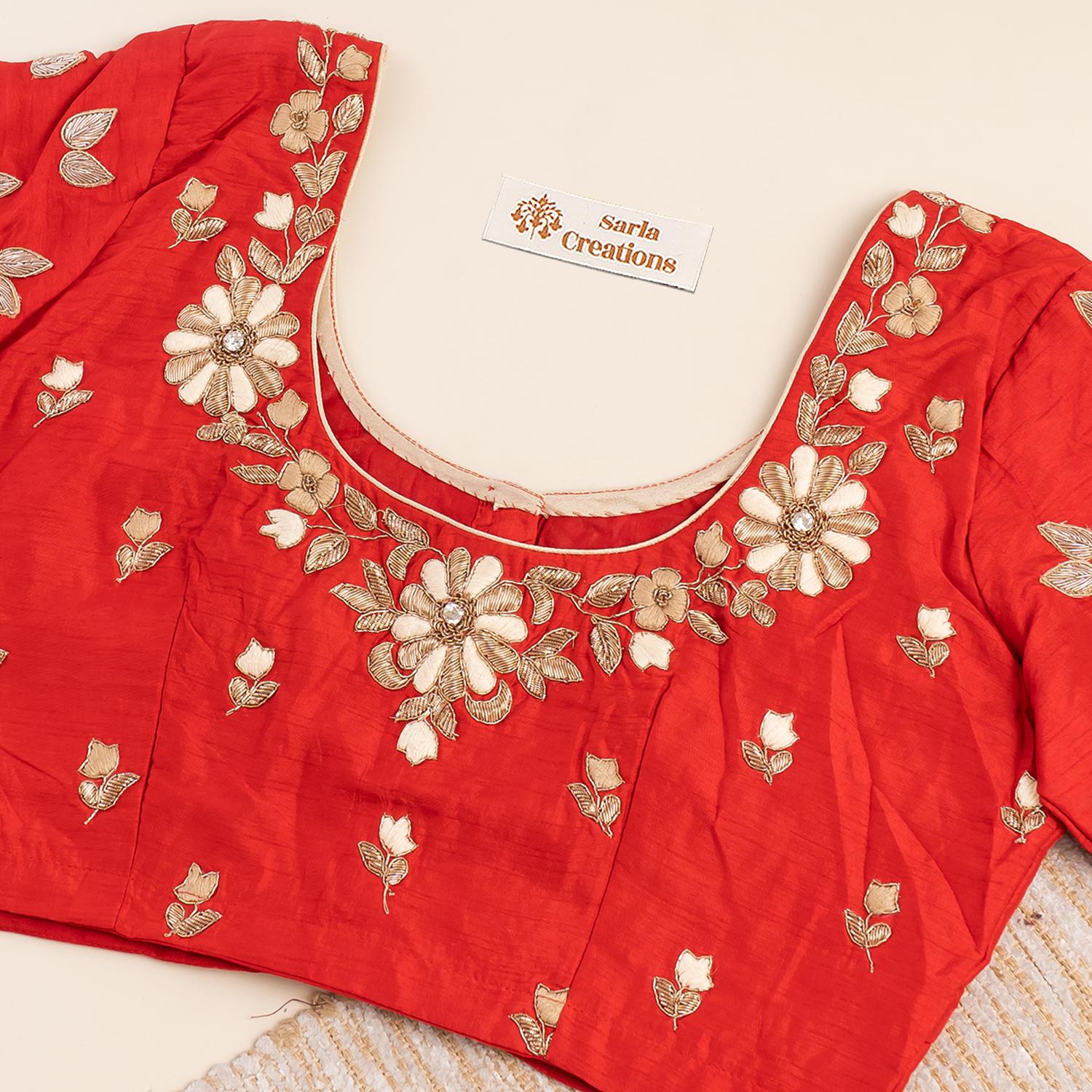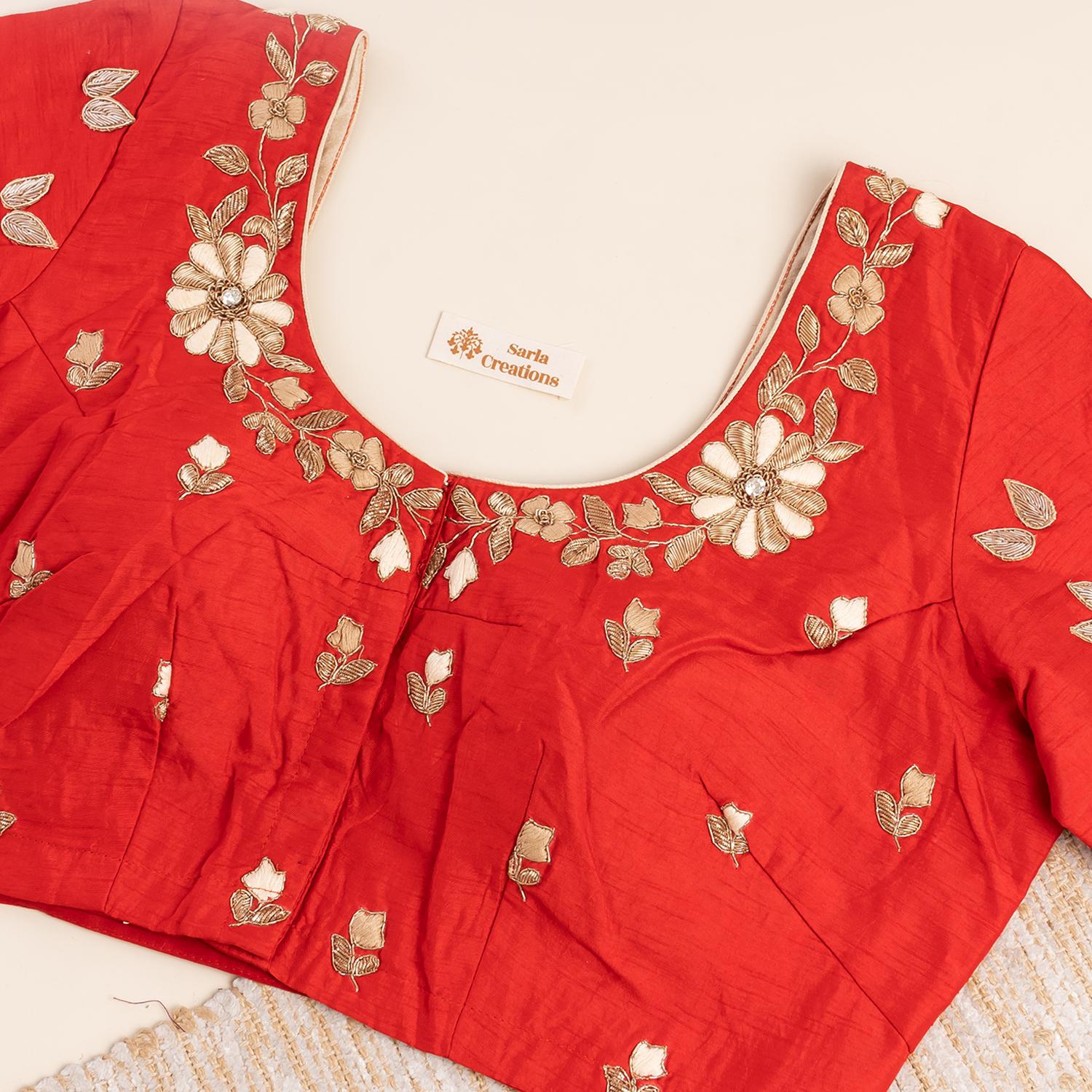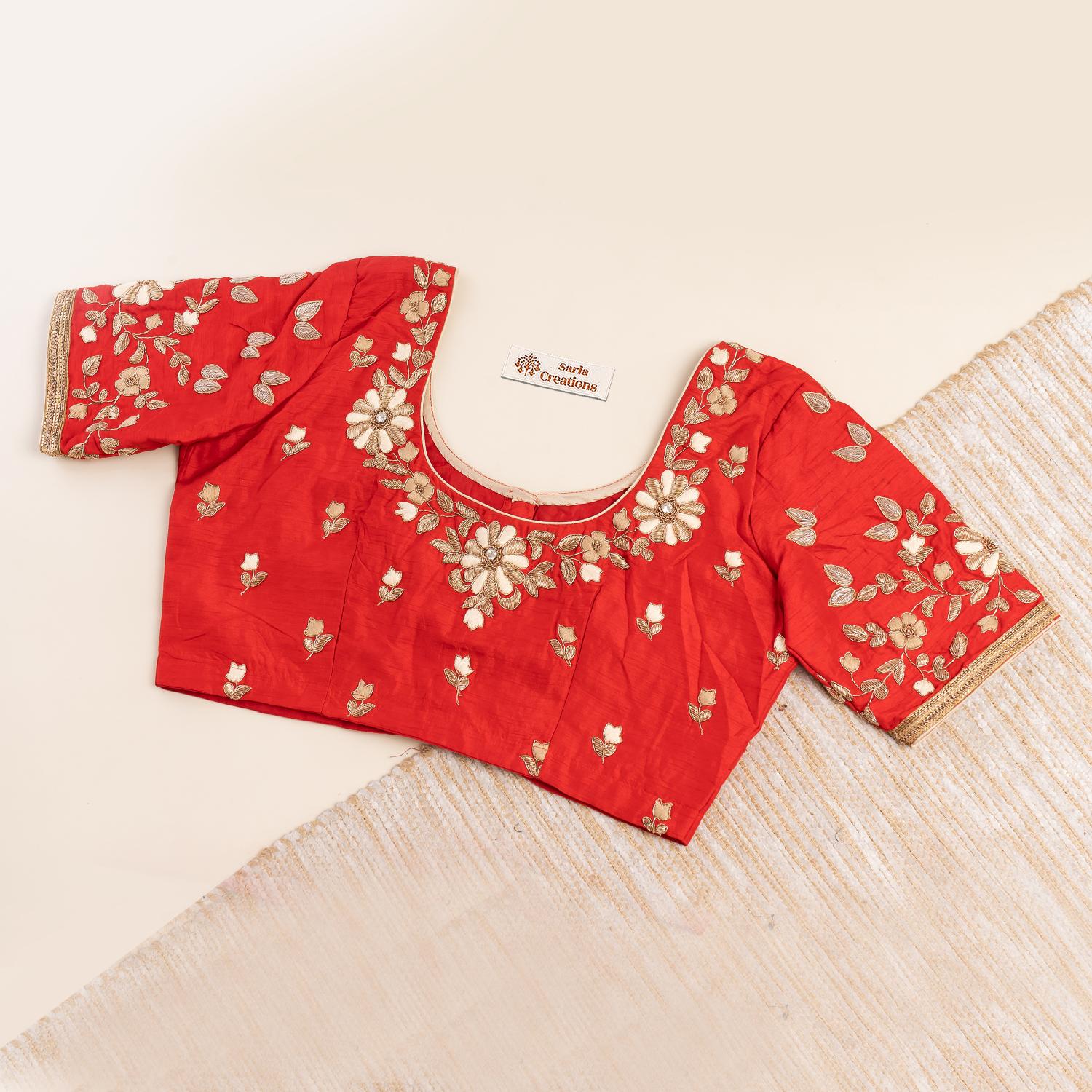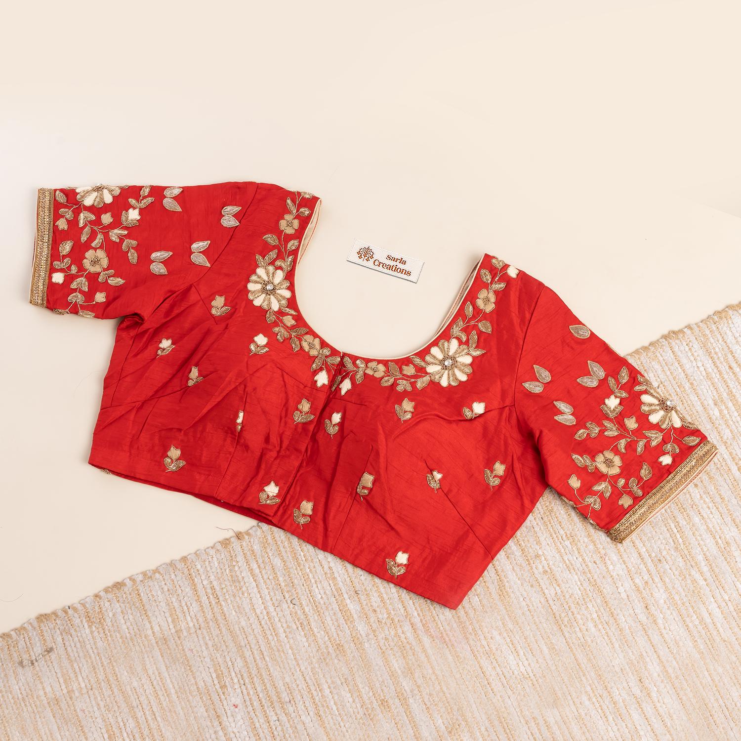 जरदोजी के हाथ से बना लाल ब्लाउज