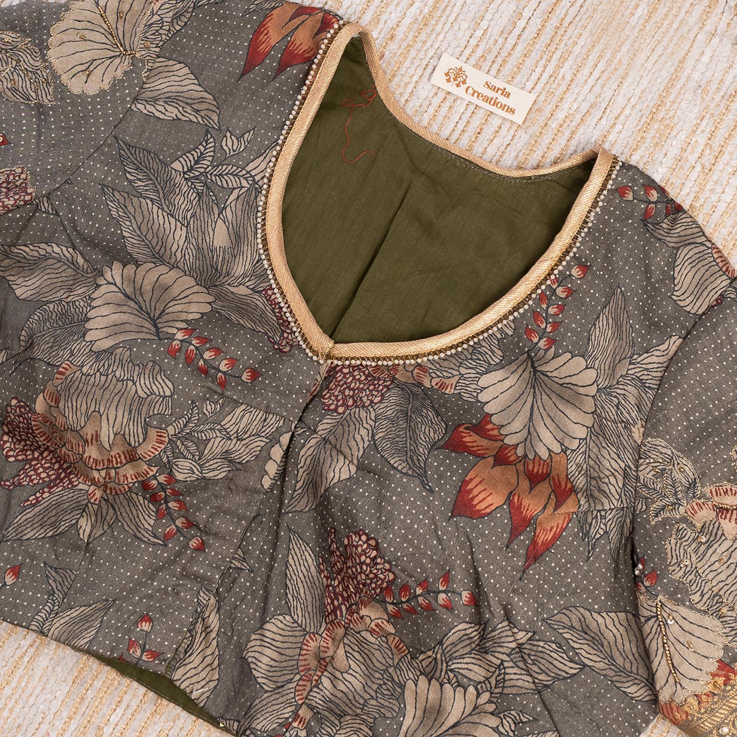 हाइलाइट के साथ प्रिंटेड ग्रे ब्लाउज