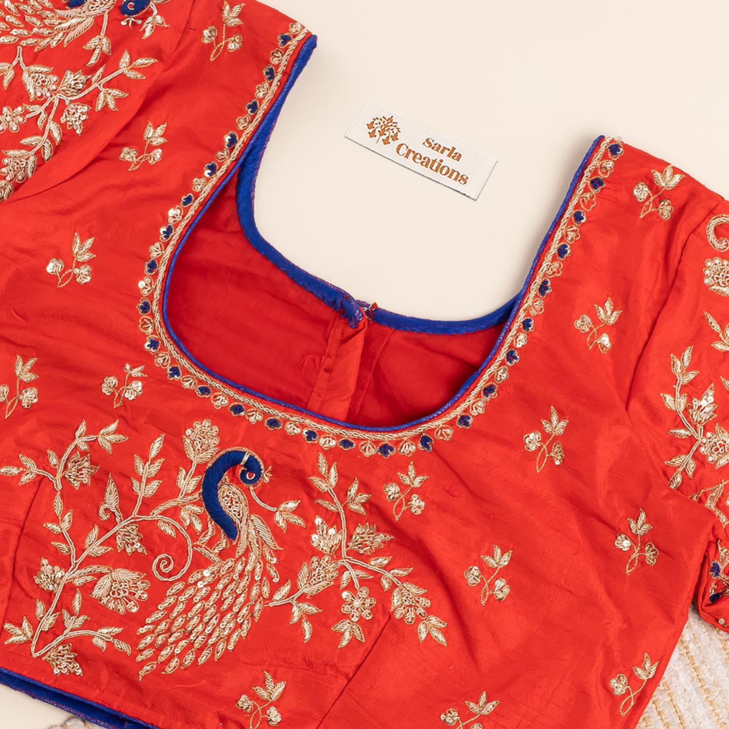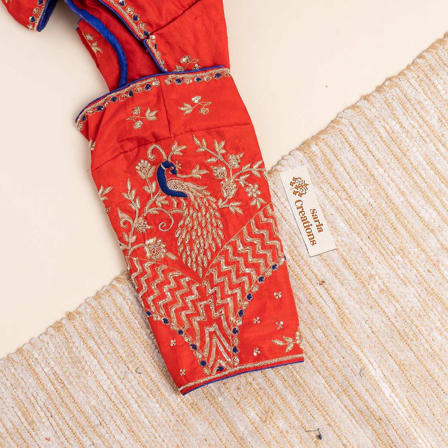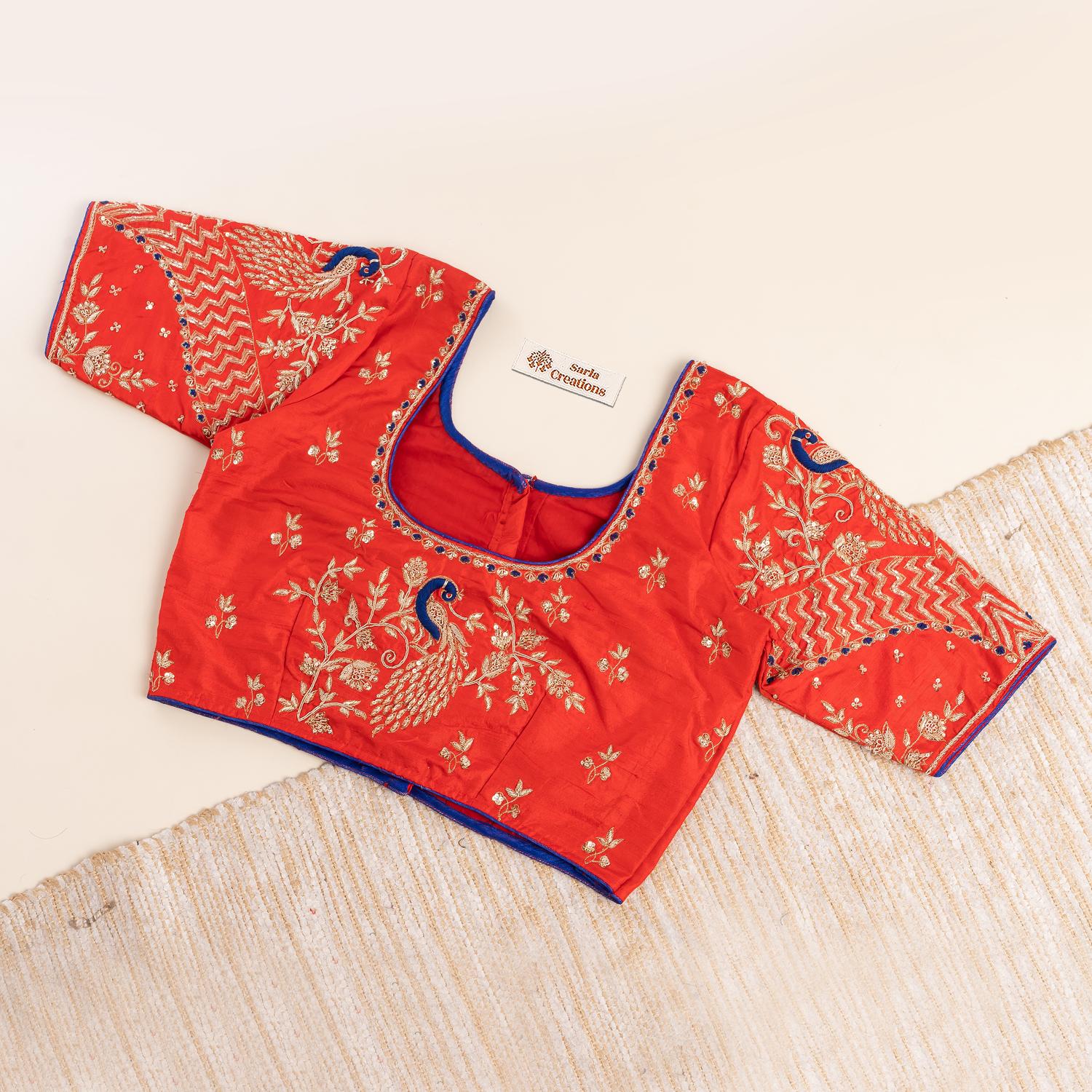 जरदोजी के हाथ से बना लाल ब्लाउज