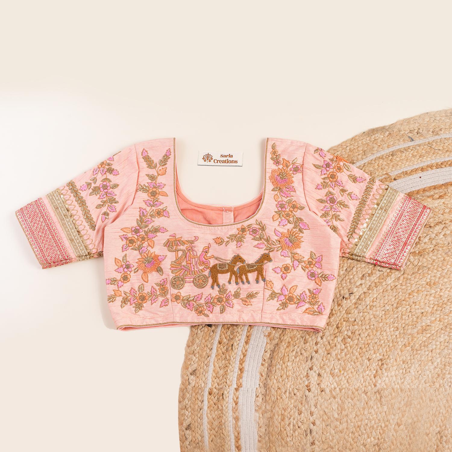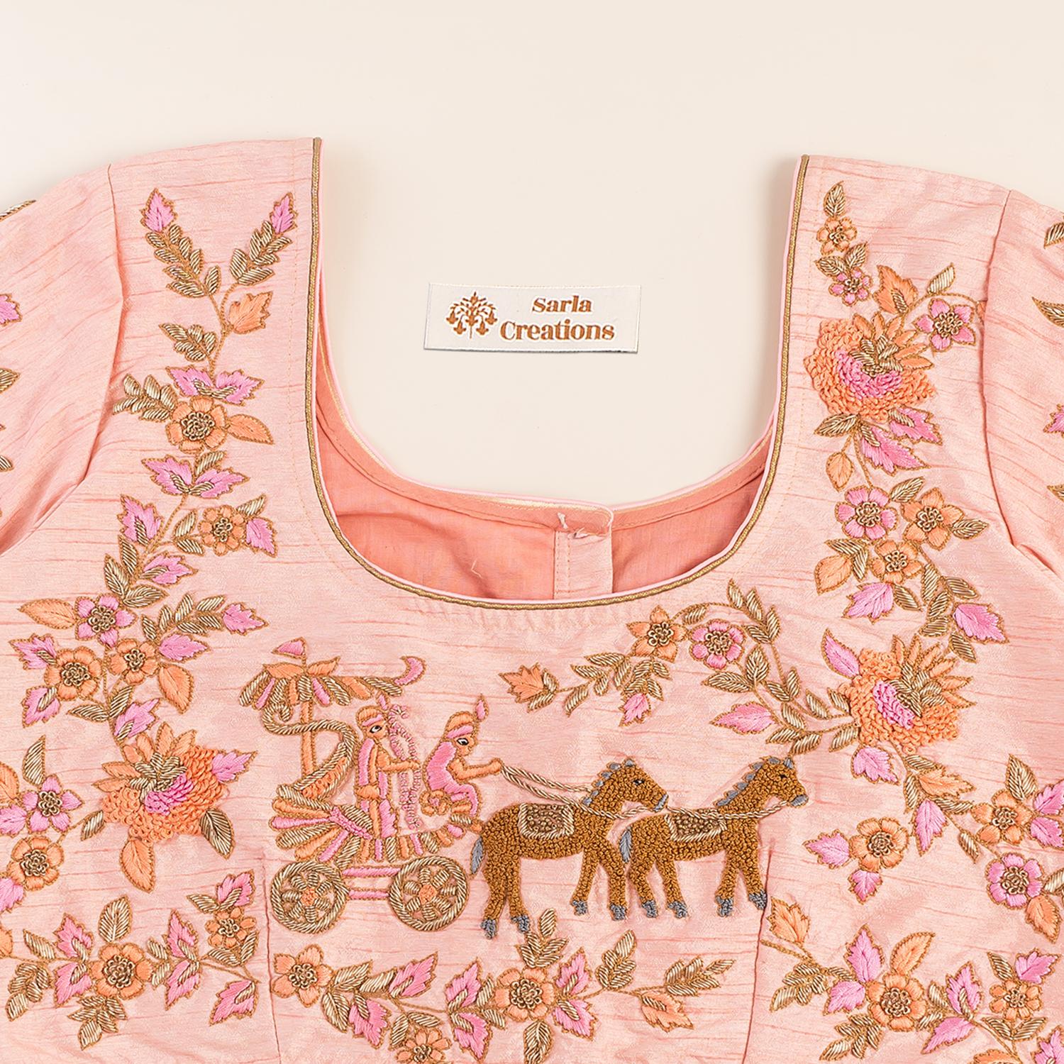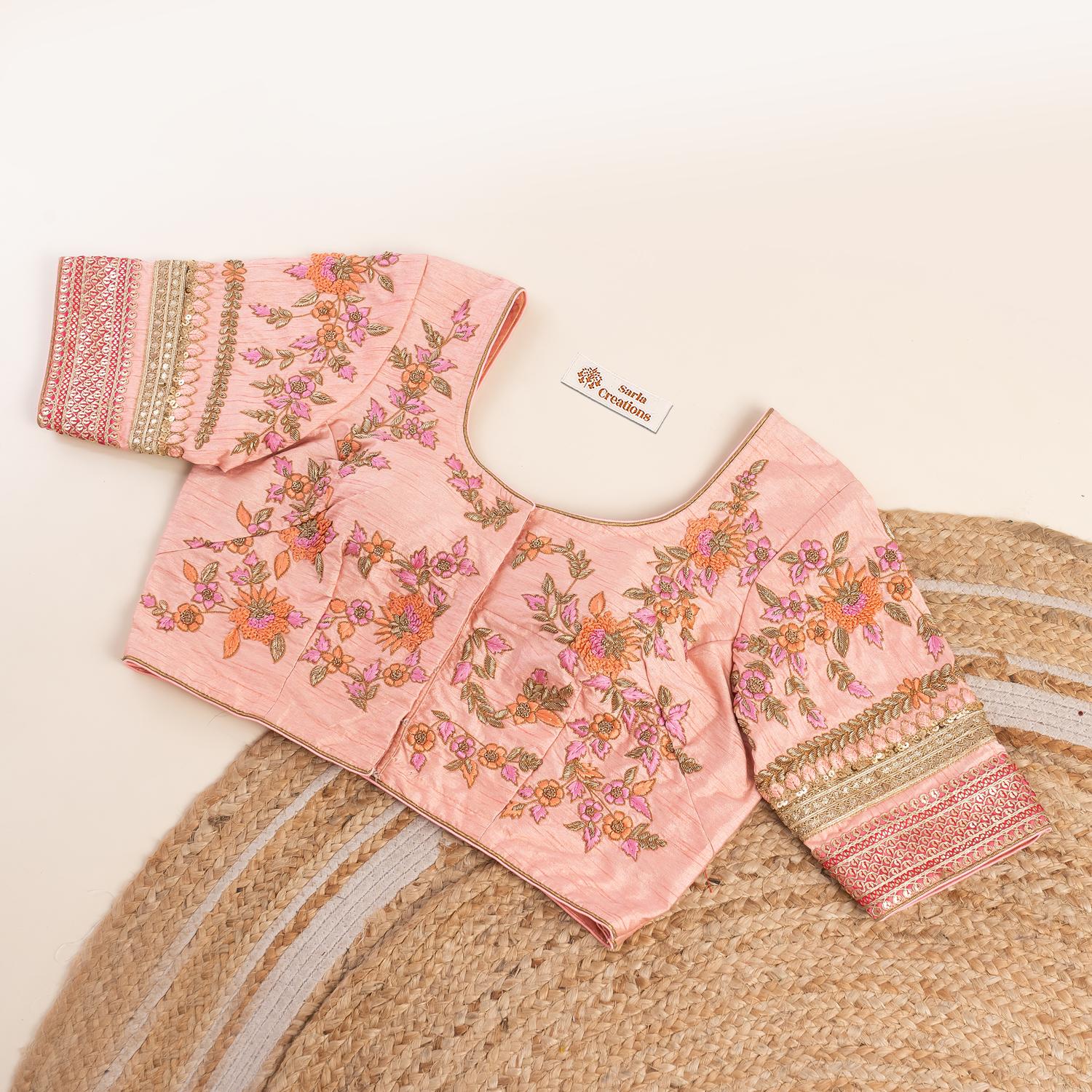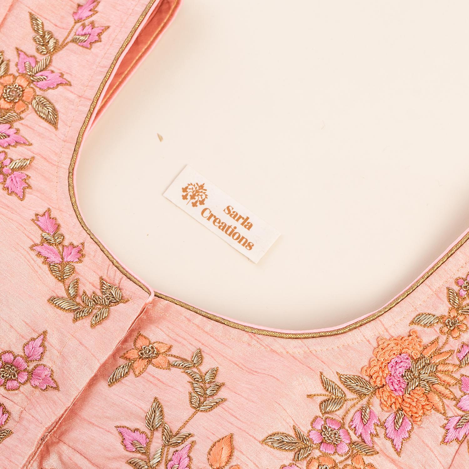 ज़रदोज़ी और धागे के काम से बना गुलाबी ब्लाउज़