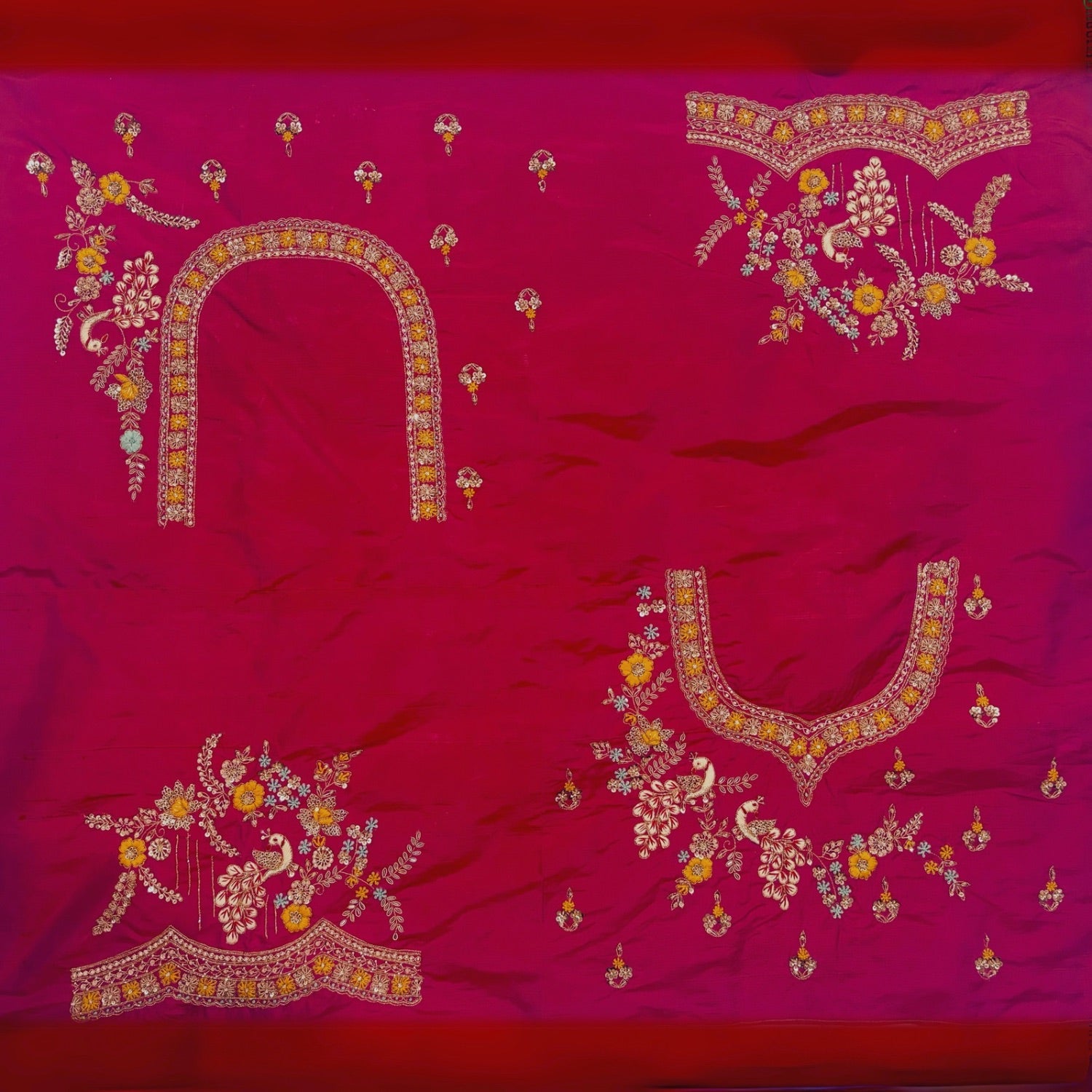 Pink Zardozi handwork blouse piece adorned with intricate figure motifs in Silk